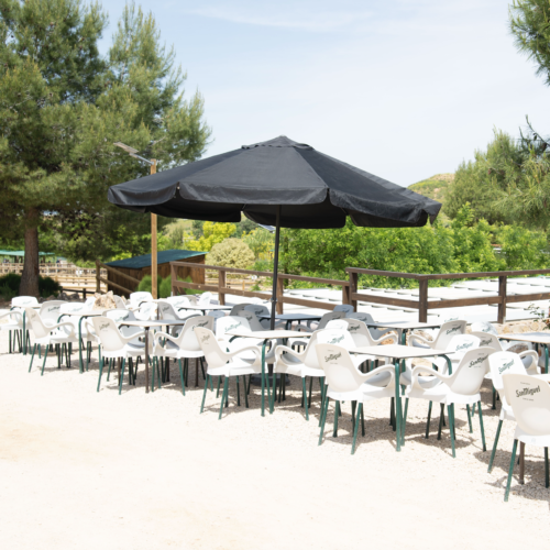 Un espacio tranquilo con terraza y mesas donde parar un momento, tomar algo y disfrutar del entorno natural. El lugar perfecto para descansar entre actividades, compartir impresiones y continuar la visita con energía.